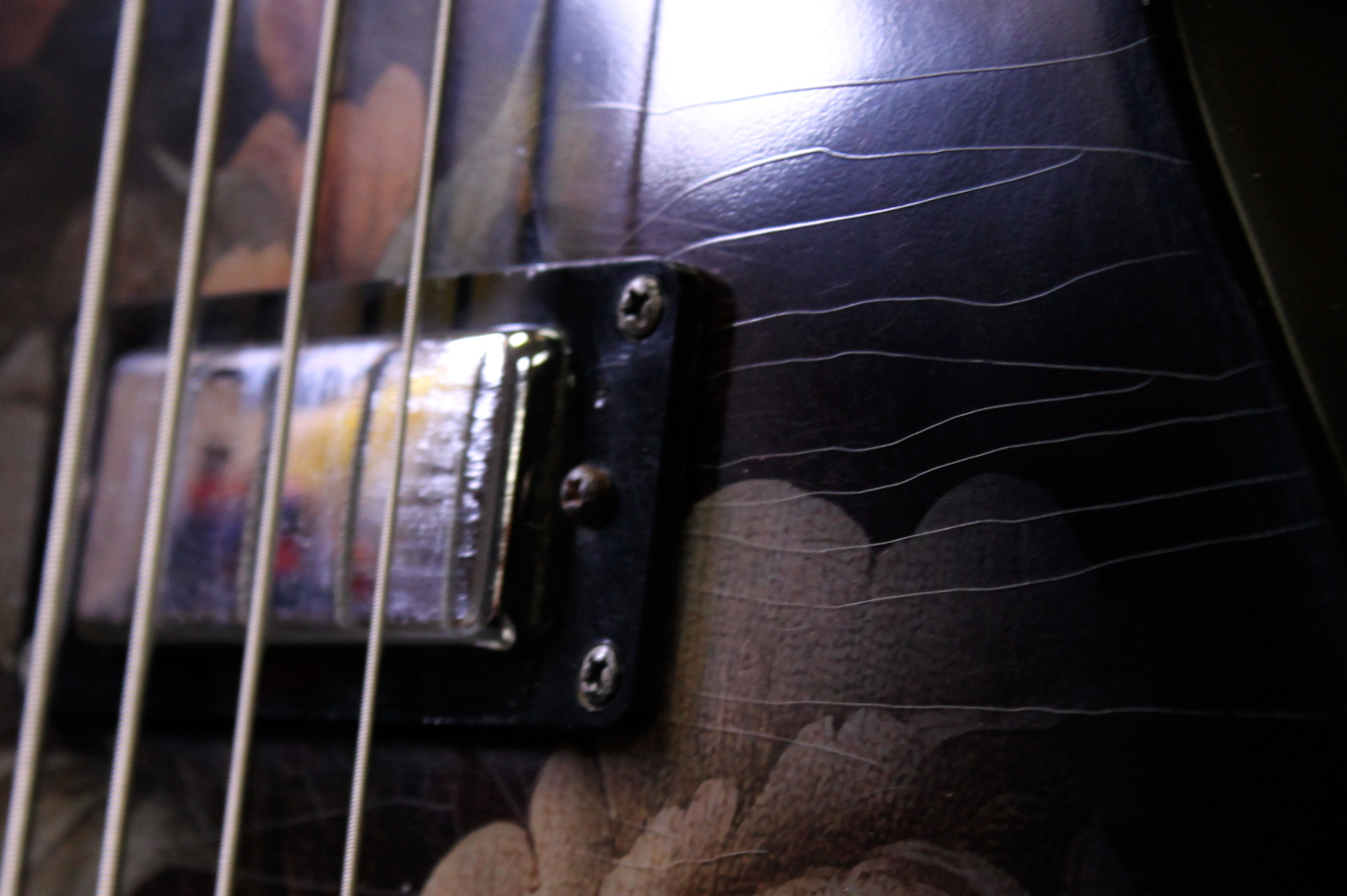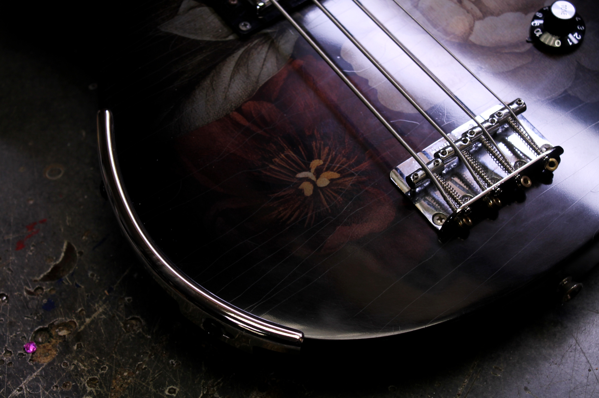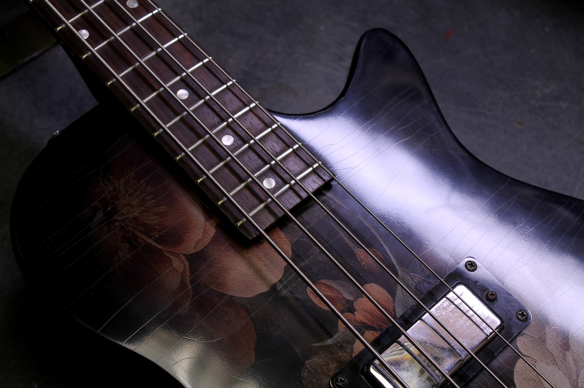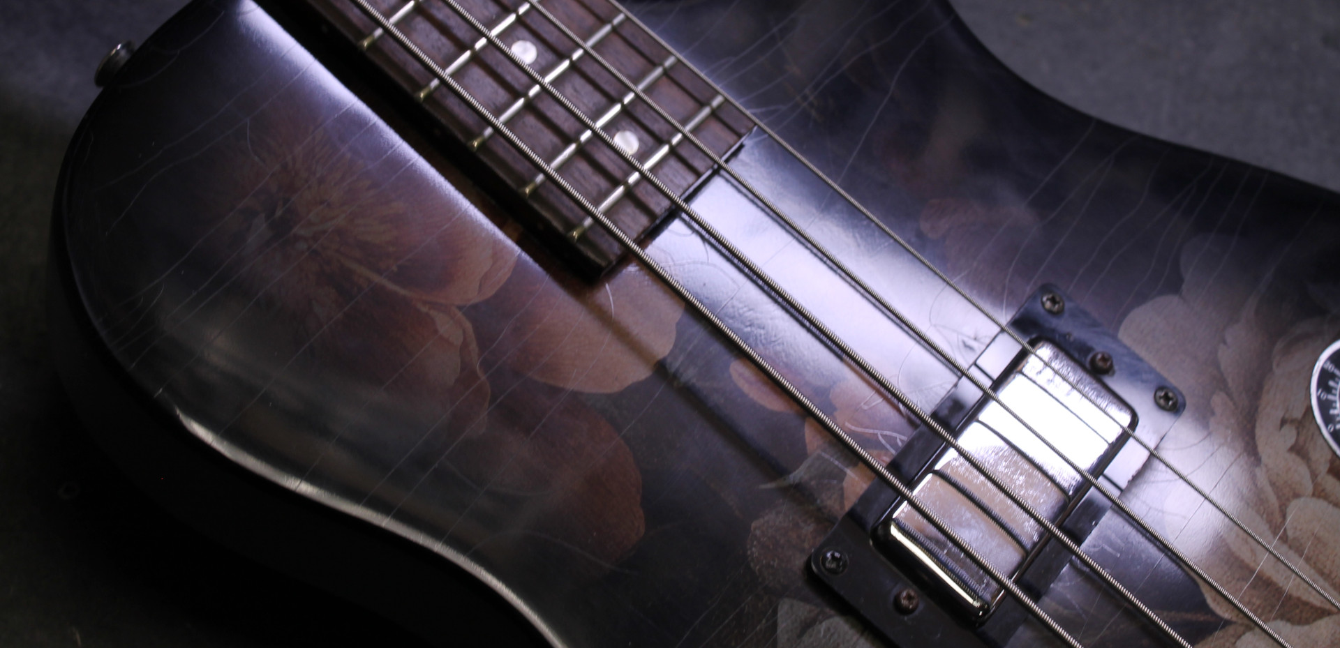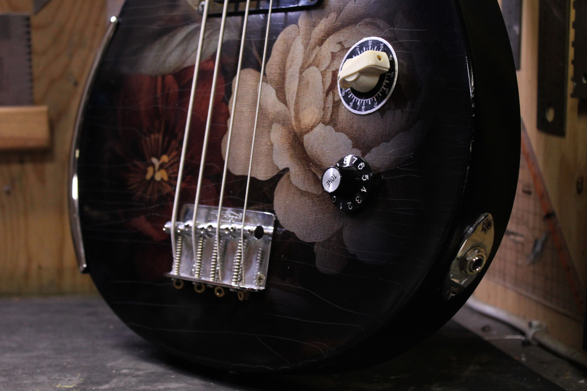 Après plusieurs années passées à faire vibrer la scène punk, cette basse électrique unique entame aujourd’hui une nouvelle vie, entre artisanat d’art et design raffiné. Entièrement revisitée, elle se distingue par une table décorée d’une illustration inspirée des natures mortes flamandes du XVIIe siècle, offrant un contraste saisissant entre héritage classique et esprit rock.